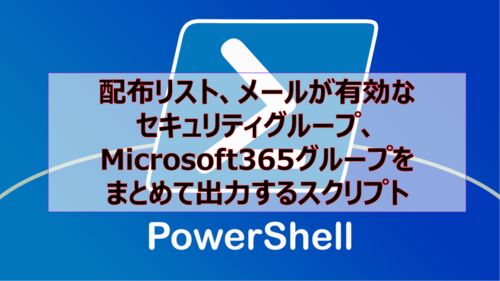 配布リストとメールが有効なセキュリティグループの情報を出力する場合は、Get-DistributionGroupのコマンドレット、Microsoft365 グループの情報を出力するには、Get-UnifiedGroup のコマンドレットを実行する必要があるため、別々に実行しないといけません…