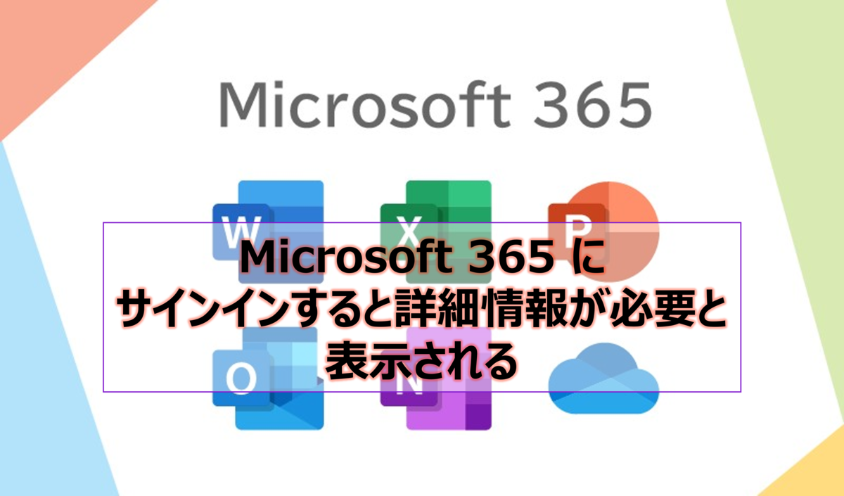 今回は、Microsoft 365 にサインインすると[詳細情報が必要]と表示され、期限が表示されている事象についてご紹介したいと思います。